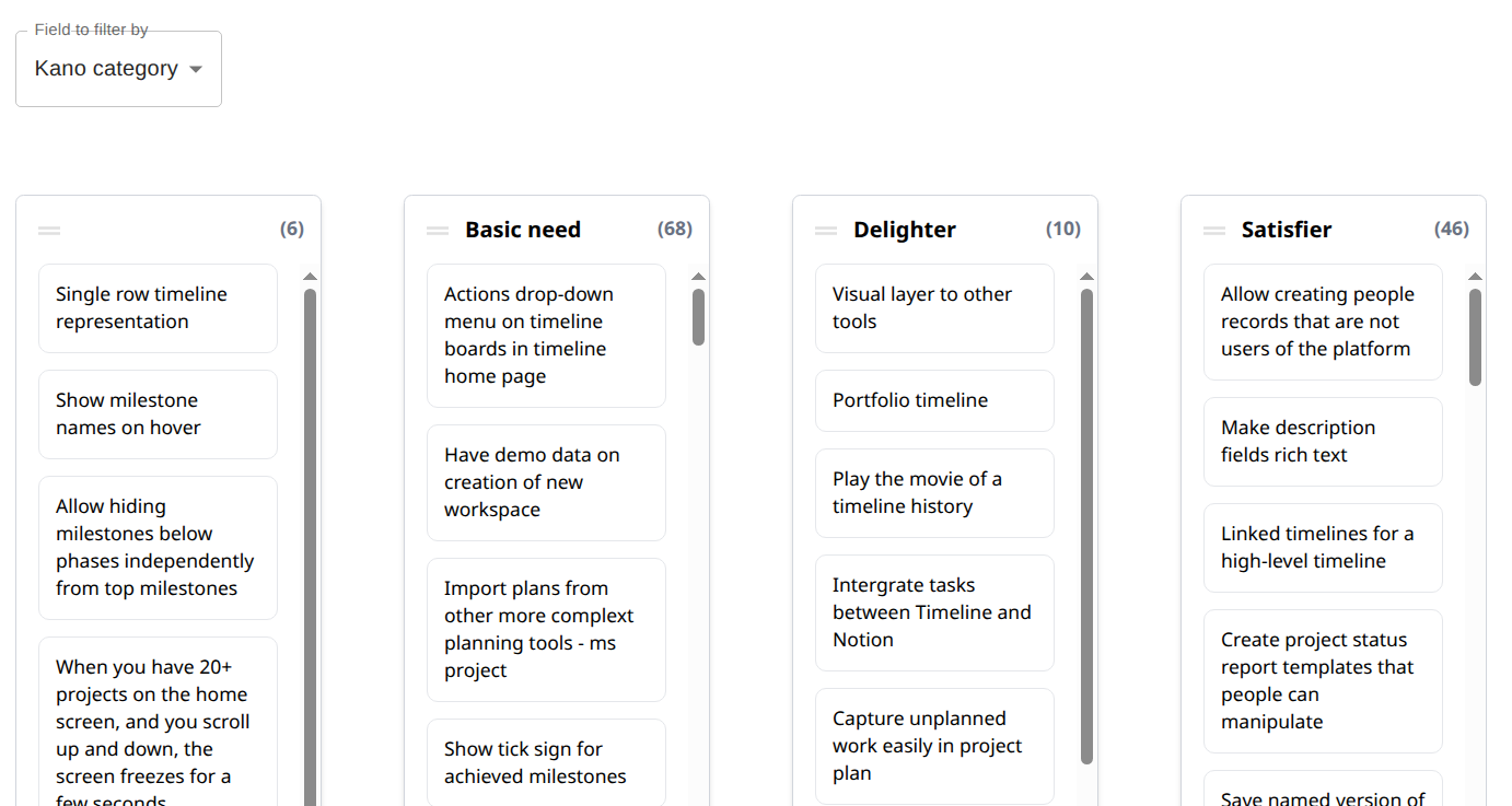 Drag and drop the cards between columns. Switch the field to group the cards by.